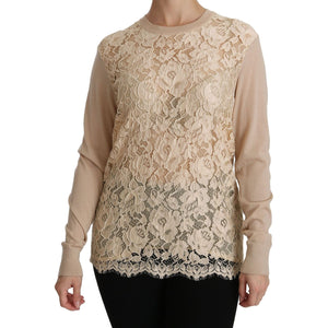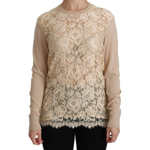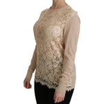 Dolce & Gabbana Beige Lace Long Sleeve Top Cashmere Blouse
