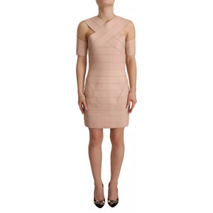 Dsquared² Beige Leather Open Shoulder Sheath Mini Dress 295403198452 -42