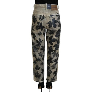 Dsquared² Beige Leaves Cotton High Waist Denim Jeans Boston
