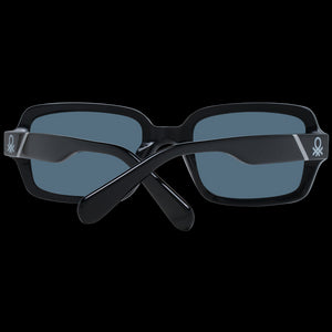 • BENETTON MOD. BE5056 52001 Gent sunglasses with black frame and blue lenses, shown from the back view against a black background.