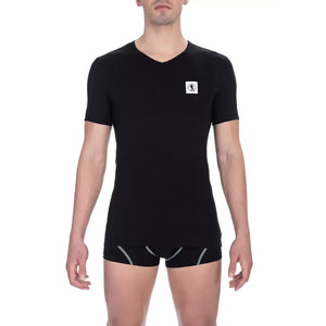 Bikkembergs Black Cotton Men V-Neck T-Shirt