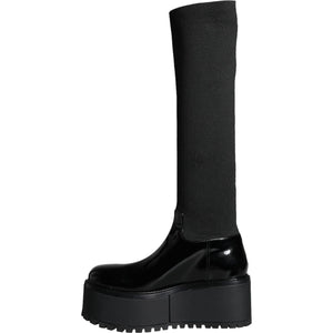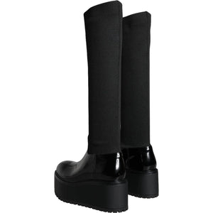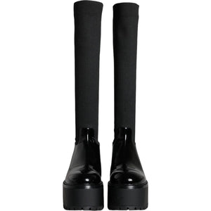 Dolce & Gabbana Black Leather Jersey Knee High Boots Shoes