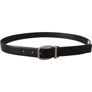 Dolce & Gabbana Black Leather Silver Metal Chrome Logo Buckle Belt