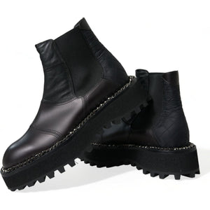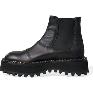 Dolce & Gabbana Black Leather Slip On Stretch Chelsea Boots Shoes