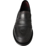 Dolce & Gabbana Black Leather Slipper Loafers Stitched Shoes