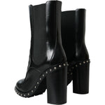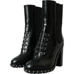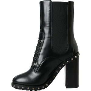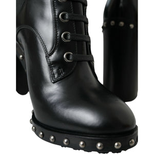 Dolce & Gabbana Black Leather Studded Lace Up Boots Shoes
