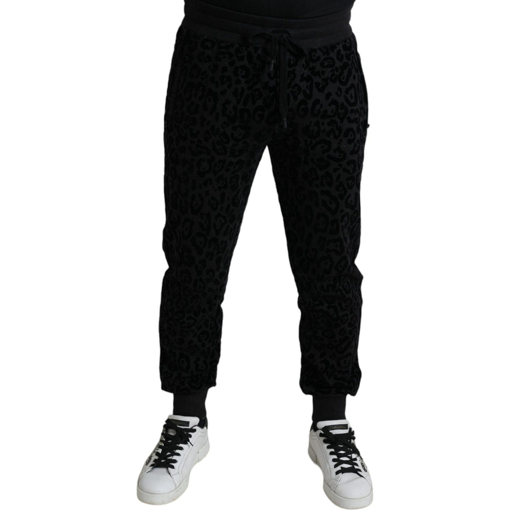 Dolce & Gabbana Black Leopard Cotton Slim Fit Jogger Pants