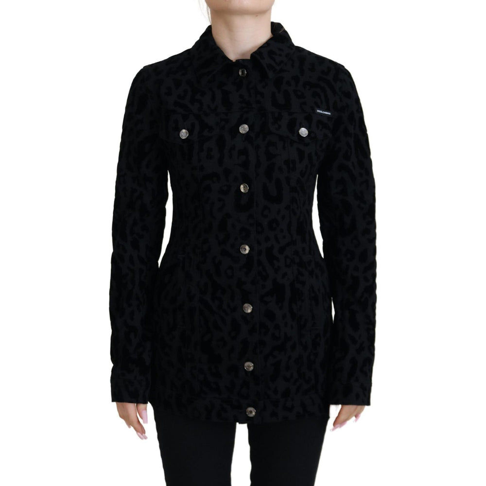 Dolce & Gabbana Black Leopard Long Sleeve Denim Cotton Jacket