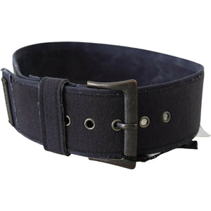 Ermanno Scervino Black Navy Blue Wide Square Rustic Buckle Belt