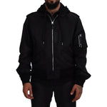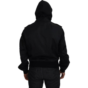 Dolce & Gabbana Black Nylon Hooded Full Zip Men Coat Jacket