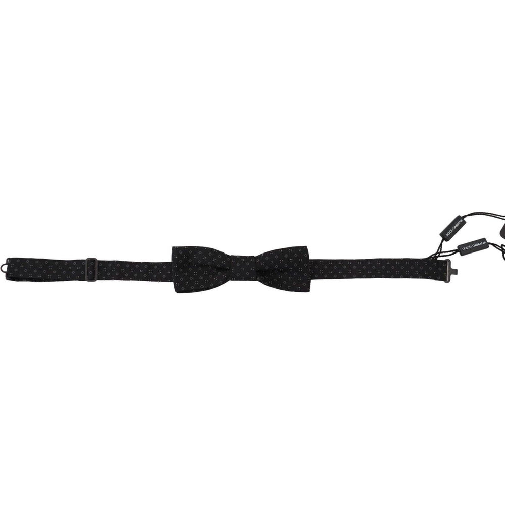 Dolce & Gabbana Black Pattern Silk Adjustable Neck Papillon Bow Tie