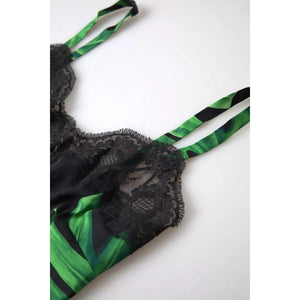 Dolce & Gabbana Black Philodendron Print Silk Camisole Underwear