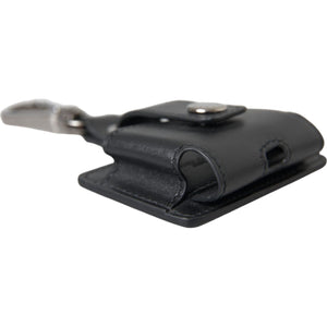 Dolce & Gabbana Black Plain Leather Silver Metal Airpods Case