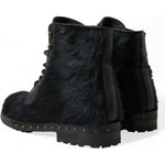 Dolce & Gabbana Black Pony Style Leather Mid Calf Boots Shoes