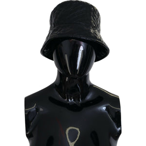Dolce & Gabbana Black Quilted Faux Leather Women Bucket Cap Hat