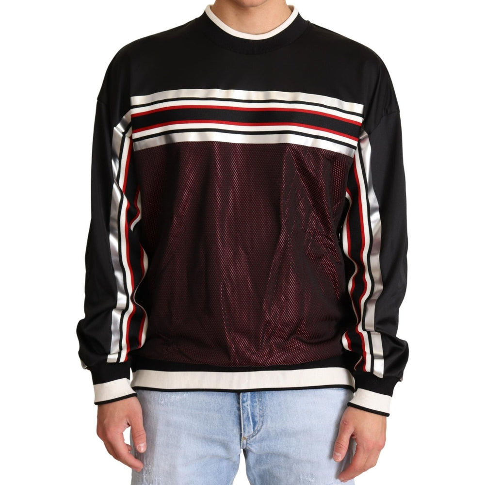 Dolce & Gabbana Black Red Mesh Sport Pullover Crewneck Sweater