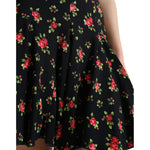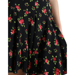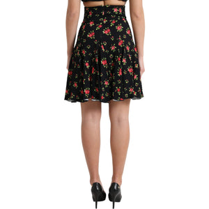 Dolce & Gabbana Black Rose Print High Waist A-line Mini Skirt