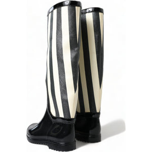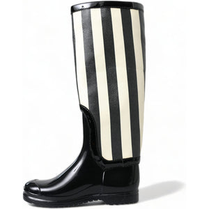 Dolce & Gabbana Black Rubber Knee High Flat Boots Shoes