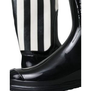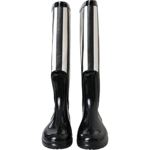 Dolce & Gabbana Black Rubber Knee High Flat Boots Shoes