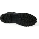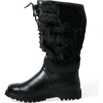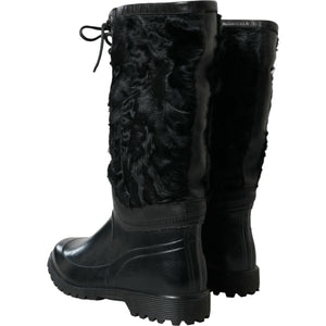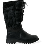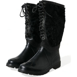 Dolce & Gabbana Black Rubber Lace Up Shearling Rain Boots Shoes