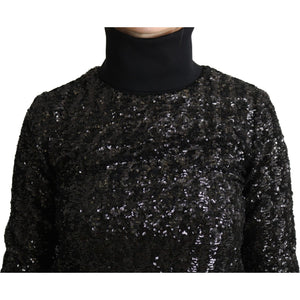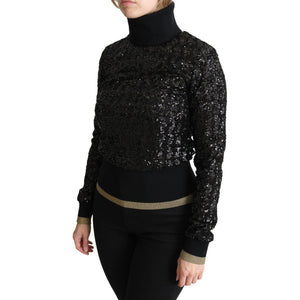 Dolce & Gabbana Black Sequined Knitted Turtle Neck Sweater