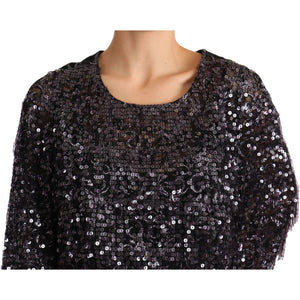 Dolce & Gabbana Black Sequined Long Sleeve Shift Midi Dress