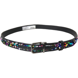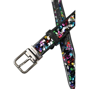 Dolce & Gabbana Black Sequined Silver Metal Buckle Women Belt