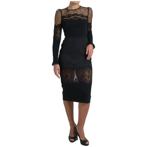 Dolce & Gabbana Black Sheer Floral Lace Sheath Midi Dress