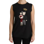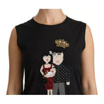 Dolce & Gabbana Black Silk DG Family Crystal Sleeveless Top