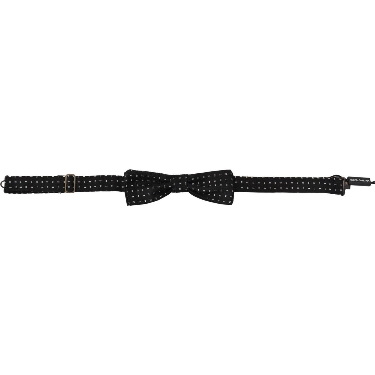 Dolce & Gabbana Black Silk Patterned Neck Papillon Accessory Bow Tie