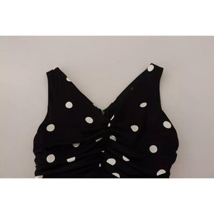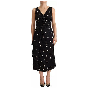 Dolce & Gabbana Black Silk Polka Dots V-neck Sheath Midi Dress