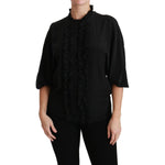 Dolce & Gabbana Black Silk Shirt Ruffled Top Blouse