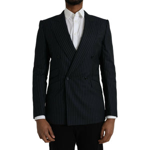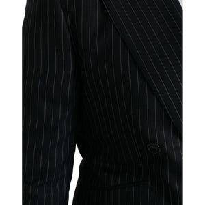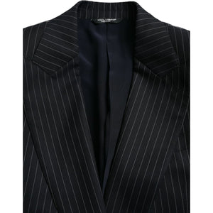 Dolce & Gabbana Black Stripe SICILIA Double Breasted Coat Blazer