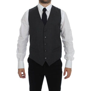 Dolce & Gabbana Black Striped Wool Single Breasted Vest