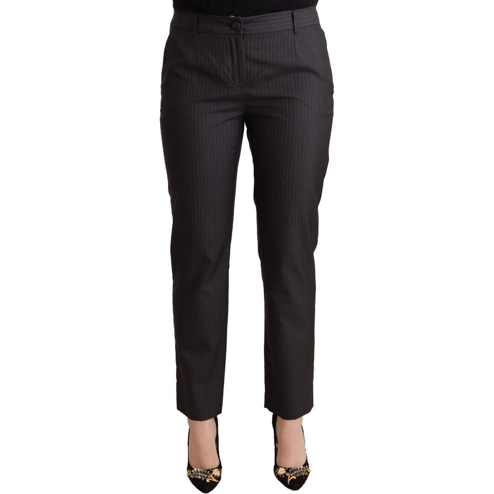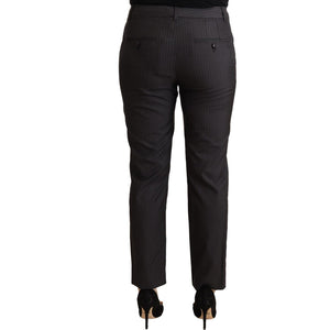 Dolce & Gabbana Black Striped Wool Tapered Trouser Pants