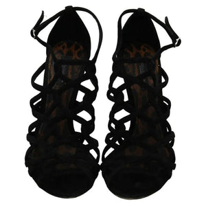 Dolce & Gabbana Black Suede Ankle Strap Stiletto Shoes