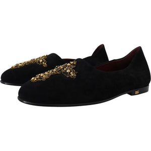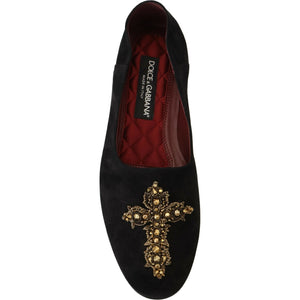 Dolce & Gabbana Black Suede Gold Cross Slip On Loafers Shoes