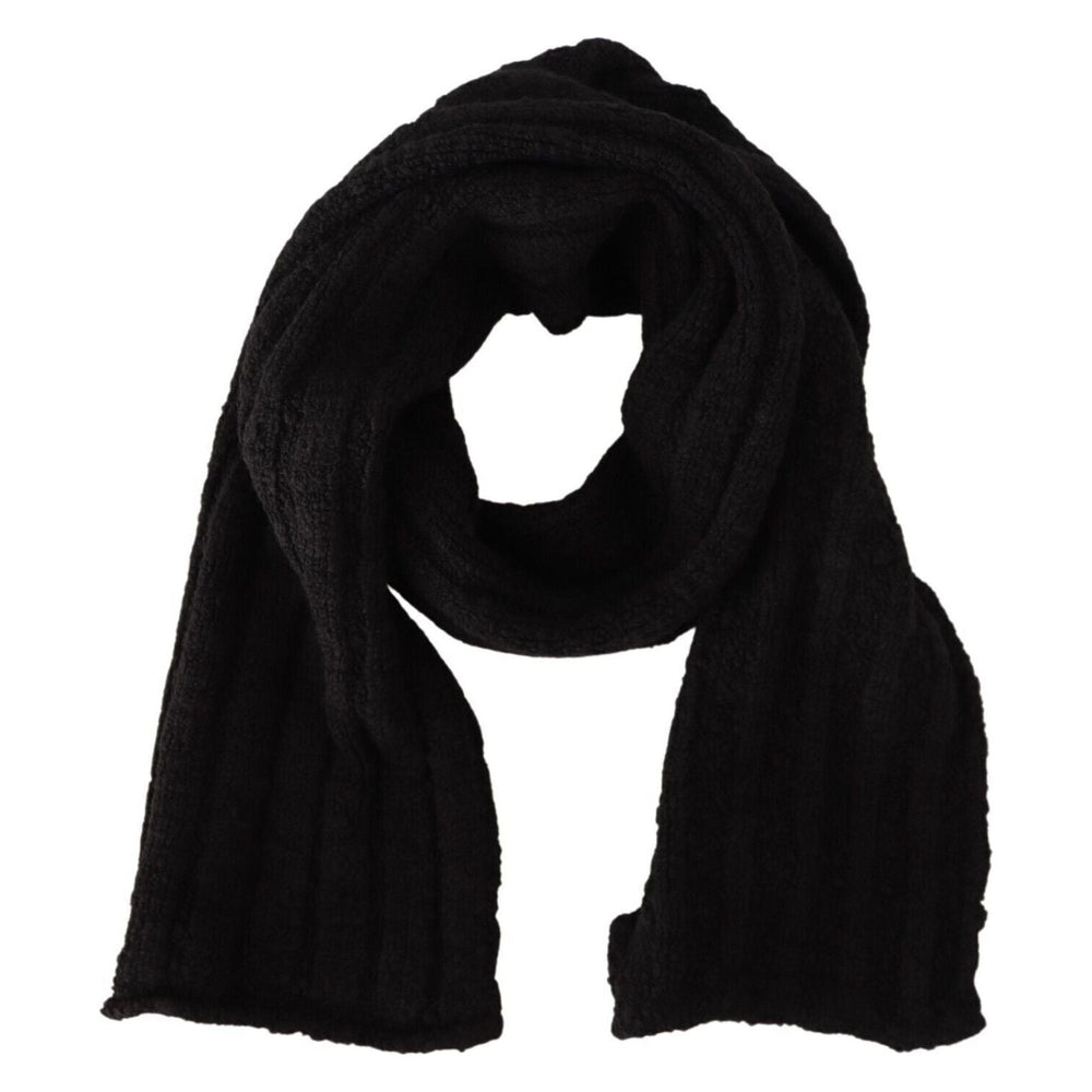 Dolce & Gabbana Black Virgin Wool Knitted Unisex Warmer Shawl Scarf