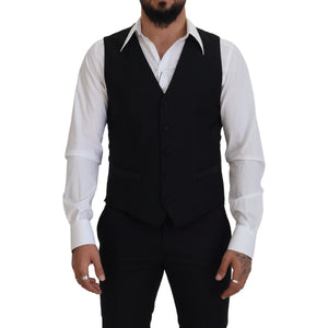 Dolce & Gabbana Black Virgin Wool Waistcoat Formal Dress Vest