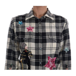 Gorgeous brand new with tags, 100% Authentic DOLCE & GABBANA black and white checkered crystal and sequined Fairy tale wool shirt.