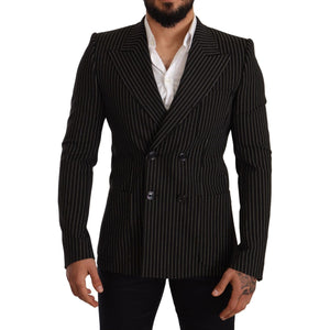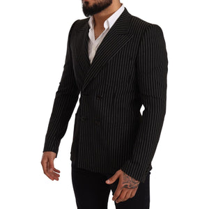 Dolce & Gabbana Black White Striped Slim Fit Coat Blazer