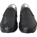 Dolce & Gabbana Black Woven Buffalo Leather Men Loafers Shoes