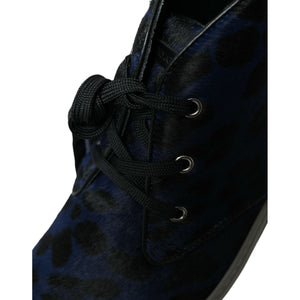 Dolce & Gabbana Blue Calfskin Leopard Mid Top Sneakers Shoes