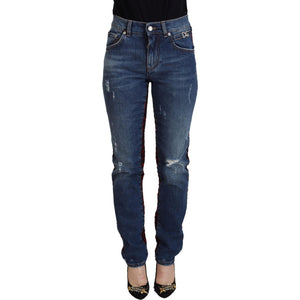 Dolce & Gabbana Blue Checkered Back Skinny Denim Jeans