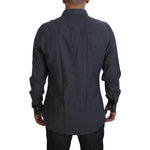 Dolce & Gabbana Blue Cotton Denim Crystal Bee Shirt