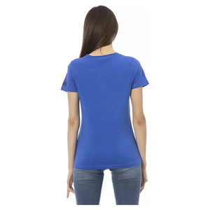 Embrace the bold spirit of Trussardi Action with this captivating blue T-shirt, a true emblem of trendy casual wear. Crafted for those who appreciate the art of effortless style, this top features an eye-catching front print that makes a statement without trying too hard. The combination of cotton and viscose ensures both comfort and durability, making it an ideal choice for any fashion-forward wardrobe. Radiate confidence with this essential piece from Trussardi Action, seamlessly blending modern style with timeless elegance.