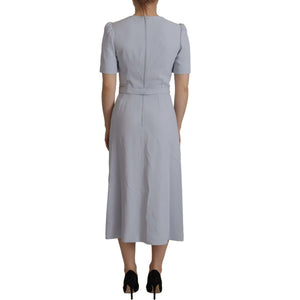 Dolce & Gabbana Blue Floral Applique Midi Viscose Dress