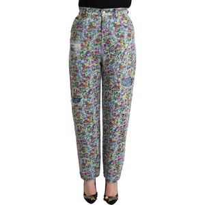 Dolce & Gabbana Blue Floral Print High Waist Denim Tapered Jeans