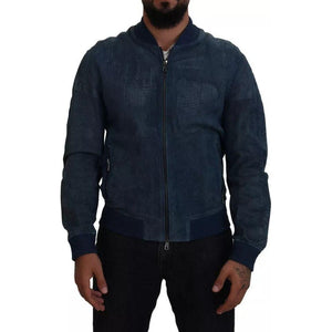 Dolce & Gabbana Blue Leather Perforated Full Zip Jacket