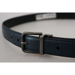 Dolce & Gabbana Blue Leather Silver Metal Buckle Vintage Belt